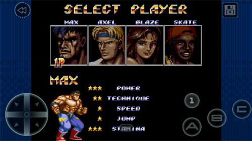 5、选择“1 PLAYER”点击“start”进入角色选择界面。