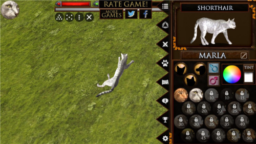 获取经验捕获和吃你的猎物,照顾你的家人,完成任务!提高你的小猫,以增加他们的健康和攻击伤害,赚取积分,以提高您的统计数据,并增加您的包的大小。