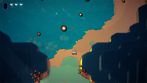 游戏借鉴了《塞尔达传说》和“银河城”系列的经典设计,玩家需要通过探索地图、解锁新能力来拓展可探索区域。例如,学会加速冲刺后可以跳过平台空隙,强化射击能力后可以打碎裂缝墙壁或巨大石块,发现隐藏宝物。