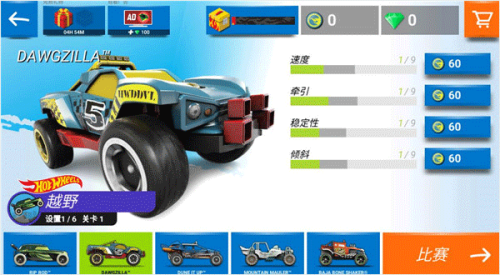 4、选择赛车类型点击比赛开始。在进入关卡之前,玩家需要选择自己的赛车类型。热力赛车中有多种赛车可供选择,包括跑车、越野车、摩托车等。每种赛车都有不同的性能和特点,玩家需要根据自己的喜好和需求选择适合自己的赛车类型。