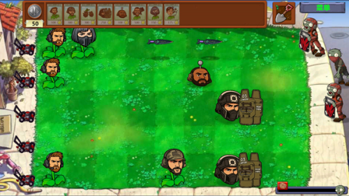 5、除了植物方得到了加强之外,僵尸方也得到了一定幅度的增强,例如手持机枪的僵尸会快速削减植物的生命。