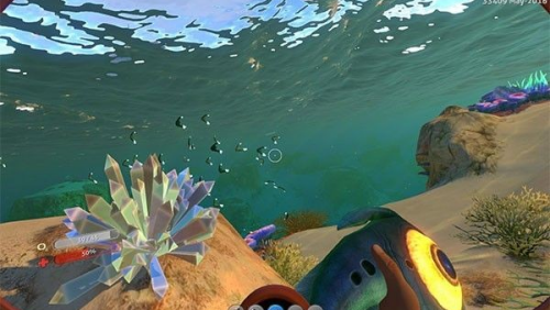 7、找到逃生舱门,进入到海里,开始收集材料即可。