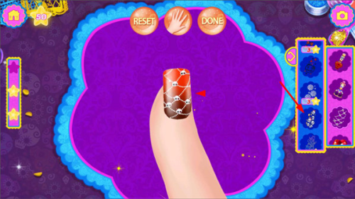 4、涂好指甲油后,玩家可以选择工具栏中的装饰品,给指甲添加装饰。