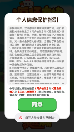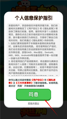 1、打开游戏,我们需要仔细阅读相应的个人信息保护指引,然后点击同意。