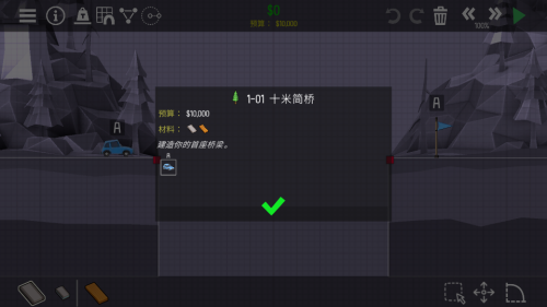 1、在进入游戏后你就开始自己的第一次桥梁设计。