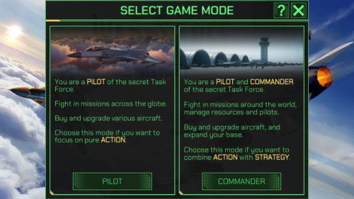 1、两种不同的模式选择,飞行员模式和指挥官模式,两种模式下的玩法规则略有差异。