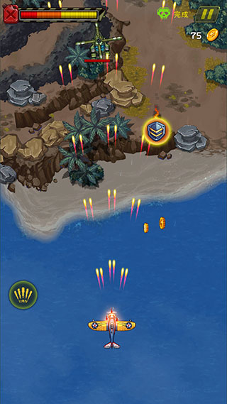 1945街机射击手游是一款致敬经典街机黄金年代的空战射击手游,游戏延续了传统弹幕射击的爽快节奏,配合绚丽的爆炸特效与密集却不混乱的敌机编队,营造出极具张力的空中对决氛围,玩家将化身盟军王牌飞行员,操控历史上真实存在的经典战机,在硝烟弥漫的云层间穿梭闪避,精准点射敌方编队,超过80种可选武器与专属技能系统,让每一场战斗都充满策略可能。1945街机射击手游通过场景细节与任务设定传递出浓厚的二战时代感,从太平洋岛屿上空的激烈缠斗,到欧洲战场阴云密布的护航行动,每一关都仿佛一段浓缩的战争史诗。特别设置的Boss战与特殊行动模式,如限时轰炸或护航任务,进一步提升策略维度。玩家需在高速移动中兼顾走位、输出与资源管理,通过拾取道具实时强化火力或修复机体。画面虽采用复古像素与粒子特效结合的风格,但打击反馈扎实,爆炸与引擎轰鸣音效极具沉浸感。