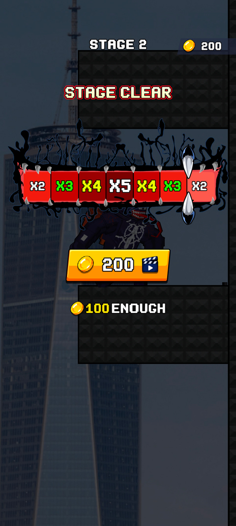 暴走毒液正版是一款轻松上手却富有成长乐趣的竖屏闯关游戏,游戏以漫威人气角色毒液为灵感,玩家将操控这位黑色共生体英雄,在垂直向上的关卡中利用灵活触手进行攀爬、跳跃与攻击,每一次甩动都能精准击碎敌人,每一次腾空都伴随着爆炸与金币飞溅。游戏采用简洁直观的操作方式,滑动屏幕即可控制毒液在钢筋水泥间穿梭,同时自动锁定周围目标进行射击,兼顾爽快感与操作自由度。暴走毒液正版的关卡设计层层递进,从城市巷道到地下实验室,障碍与伏兵层出不穷,考验反应与路径规划能力。随着战功累积,毒液将不断进化,不仅能力数值提升,还能解锁全新形态,如覆盖金属装甲的强化版或散发幽光的夜行形态。这些变化不仅体现在战斗力上,更强化了角色扮演的代入感。像素画风虽简约,但动作流畅、打击感扎实,配合低沉嘶吼与爆炸音效,营造出独特的共生体氛围,让人越玩越上瘾。
