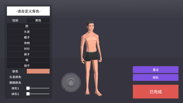 1、进入游戏后,需先自定义角色,可选择角色性别、脸、头发等,然后点击已完成。