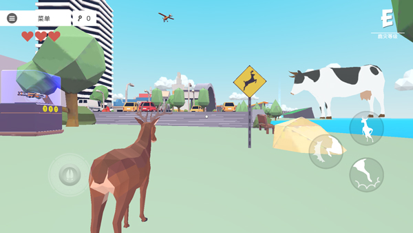 非常普通的鹿未来篇手机版是一款魔性沙雕的角色模拟游戏,游戏的主角是一只看似普通实则离谱到家的鹿,说它普通,是因为它确实长着鹿该有的样子,有鹿角有四条腿。说它离谱,是因为这脖子能像橡皮筋一样随意伸缩,鹿角硬起来能当开罐器用,拆起房子来比推土机还利索,玩家要做的就是操控这只鹿在未来都市里横冲直撞,把眼前能看到的一切都折腾一遍。非常普通的鹿未来篇手机版游戏里还散落着各种武器,手枪、冲锋枪、手雷,捡起来可以直接顶在鹿角上当装备用,对着那些追捕的动物警察一顿扫射。那些警察也不是好惹的,有会功夫的羊,有能变形成警车的熊,还有耳朵肌肉发达的兔子,追在屁股后面跑的样子又好笑又紧张。游戏里还有各种任务可以完成,但大多数人应该更享受那种漫无目的四处破坏的快乐,把整条街搞得乱七八糟之后扬长而去,回头看着满目疮痍的城市,那种恶作剧得逞的快感确实很难替代。