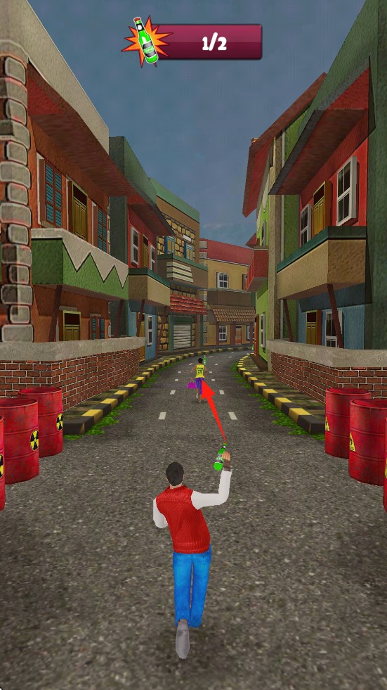 4、在跑酷的过程中,你需要捡起酒瓶子之类的物品,然后瞄准强盗将其扔出以实施打击。