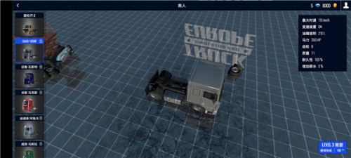 2、个性化改装系统:玩家可依据自身喜好对卡车进行定制化调整,涵盖外观颜色、装饰细节以及性能优化等方面。