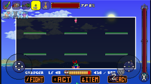 传说之下猪鲨战内置菜单最新版本是玩家自制的《传说之下》与《泰拉瑞亚》融合版本,在这里我们将要面对泰拉瑞亚中的猪龙鱼公爵,玩家在这里需要合理运用各种道具和技能,躲避各种攻击,最终将它击败,游戏保留了原版的玩法,收集武器精准瞄准射击,击败猪鲨Boss,完成任务找到出口安全逃脱出去。玩家通过精准操作与策略规划,挑战融合弹幕躲避与高机动性走位的猪鲨Boss,体验独特的非暴力通关机制与动态道德系统,与其中的怪物伙伴结识,加入到精彩的冒险中,或是击败其中的人物,决定属于你的故事结局,畅享欢乐的冒险,有喜欢深度叙事、策略战斗和黑色幽默的玩家一定不能错过这一款游戏。
