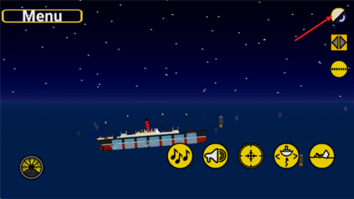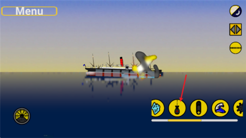 4、 点击右下角的瞄准按钮,可使用多种方式攻击船只,例如发射炮弹,使其加速下沉。