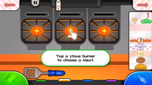 3、根据不同的要求制作美味的食物。鸡肉卷越美味,顾客给的金币就越多。