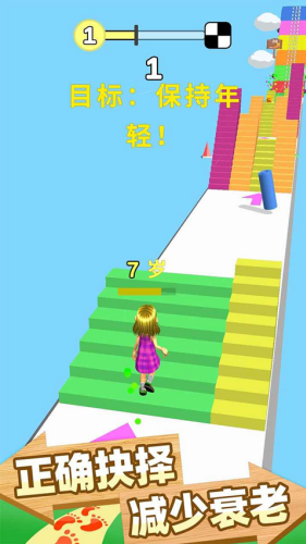 6、玩家在跑酷突破的同时收集道具,让自己变得年轻,更有障碍物关卡挑战。