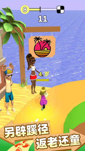 角色在跑酷时年龄会自然变化,就像行走于人生旅途,能直观看到从年轻到衰老或反向的过程,这种独特设定让跑酷不再只局限于速度比拼。