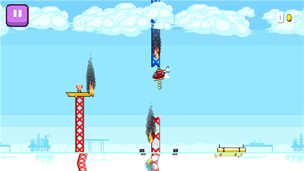 直升机救援游戏是一款把飞行救援玩出心跳的横版闯关游戏,游戏没有追求华丽的3D效果,反而用那种棱角分明的复古画风,把灾难现场的真实感表现得恰到好处,直升机机身的金属质感、浓烟升腾的工业设施、被海水包围的孤岛平台,每一帧画面都透着一种独特的年代韵味。在直升机救援游戏里玩家成为了直升机驾驶员,控制机身上升与下降,在残垣断壁与洪水泛滥的城市上空穿梭,精准地将救援梯放到被困人员身边。游戏采用经典的像素风格,却把灾害场景刻画得极具代入感,倒塌的建筑、漫上街道的水位,每一处细节都在提醒着时间的紧迫。操作看似简单,实际上对时机的把控有着不低的要求,太早放下梯子够不到人,稍晚几秒又可能错过最佳位置。游戏还贴心准备了商城系统,可以用积累的资源升级旋翼功率、加固机身结构,让直升机在更恶劣的环境中也能从容作业。从最初的手忙脚乱,到后来能够行云流水般完成整套救援流程,这种肉眼可见的成长曲线,让人玩起来格外有盼头。