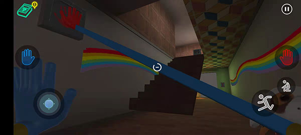 6、当手套收集完成会自动的带入手中,这个时候可以看到在墙的两侧有红色、蓝色的手印,玩家只需要将手套对着相对应的区域即可将房门打开。