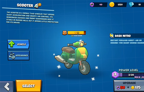 如果没有自定义和升级,《爬坡赛车》会是什么样子?使用各种皮肤定制您的赛车或座驾,并升级其性能,最大限度地发挥您的赛车潜力。