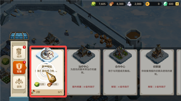 1、增加上阵英雄,首先需要建设英雄祭坛,点击建造。