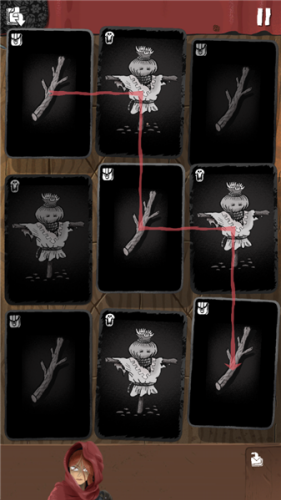 3、每一回合,你必须至少选择2张牌,通过点击它们创建一条路径,路径可以从任何卡牌开始,但只能连接相邻和斜向相邻的卡。