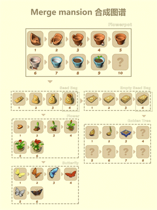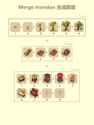 1、 集叙事与休闲玩法为一体,合并机制装扮豪宅,融神秘冒险解谜于合成体验。