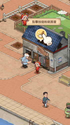 2、根据引导提示进行操作,首先需要点击按钮为小屋重新粉刷。