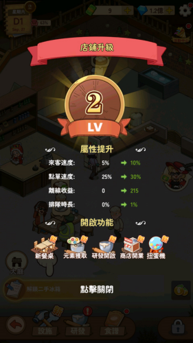 4、通过经营获得的金币可用于购买更多设备,逐步完善店铺。