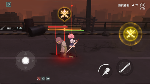 3、点击攻击按键可发动攻击,配合闪避键可打出不一样的操作。