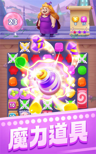 三个女巫一台戏,要么射出几个小怪兽,要么赐予几颗硬糖,要么冰冻某些糖果…总之,她们会想尽一切办法,不让你安宁,唯一的办法就是你必须尽快的消灭她们。