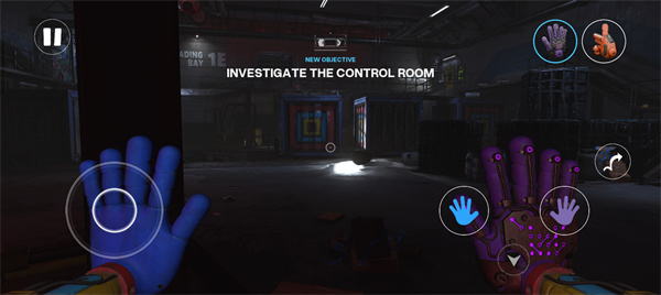 4、屏幕左侧虚拟摇杆用于控制角色行走,右侧则负责拾取物品或触发机关;