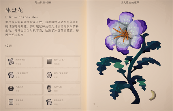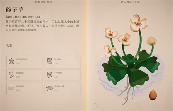 2、随后可打开柜子旁的包裹,获得一本重要的植物学书籍,书中不仅记录了庄园各个房间的分布,还收录了详细的植物图鉴,是后续探索与解谜的关键参考。