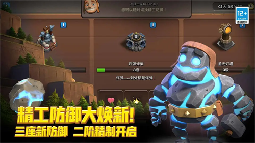 3、使用加农炮、迫击炮、箭塔、隐形炸弹、陷阱、城墙等多种防御设施保卫家乡村庄。