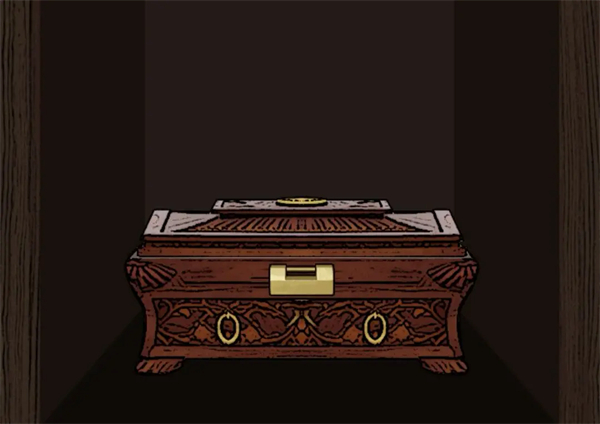 消除两波等重量砝码(9和3、6;7和2、5.随便都可以),出现一个鬼脸穿的戏服与它颜色一样才可以,不然直接死亡(这里我一直选的都是绿戏服,不过鬼脸红绿都出现过,看运气了),用钥匙打开盒子,获得贡品清单2.