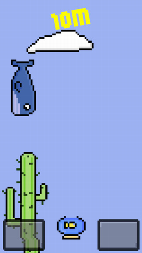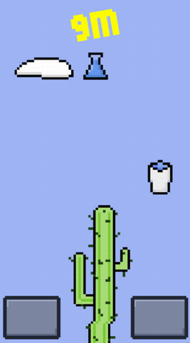 2、点击两个按钮来移动仙人掌,躲避水滴甚至是鱼儿。