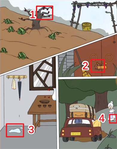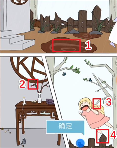 3.点击雨伞下的一滩水(没人住的房子,雨伞居然还在滴水)。