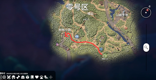 玩家从零号区从地堡入口出发,跟着下图所示的位置往前走。
