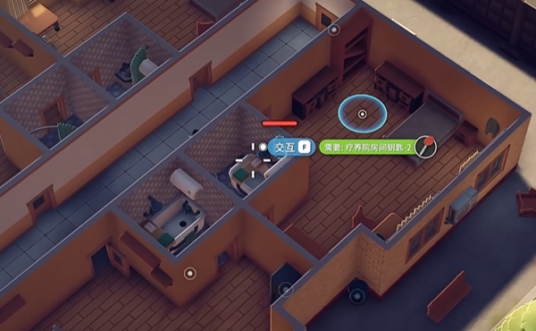 3、第二个快递,玩家需要将快递从北部厂区东门卫室送到疗养院东侧的一个房间。中间可以使用传送气泡1节省时间。最后的房间需要使用疗养院钥匙2打开。